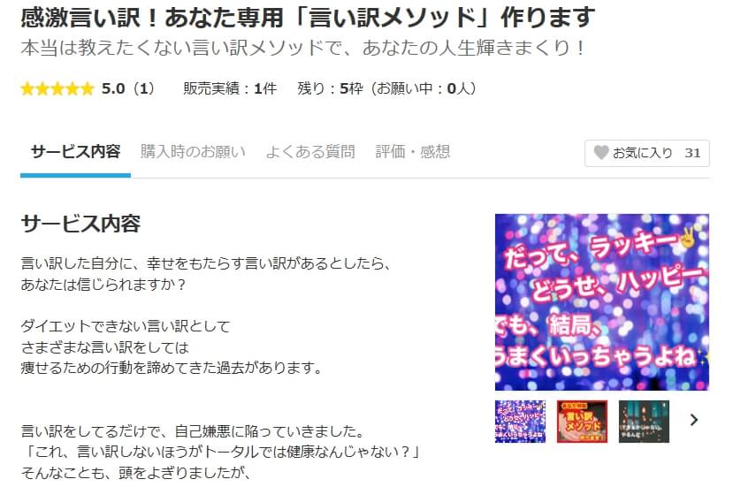 この方は、「言い訳」を転換して褒める!というサービスを行っています。